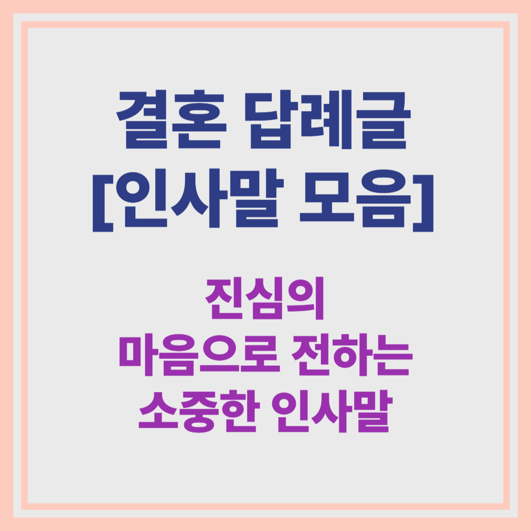 결혼식 후 감사 인사를 전하고 싶으신가요? 다양한 상황에 맞는 결혼 답례 인사말 10가지와 예쁜 표현을 서론, 본론, 결론 구성으로 소개합니다. 마음을 전하는 가장 따뜻한 말, 결혼 답례 인사말. 감사의 진심을 담은 예쁜 인사말 모음으로 소중한 분들께 진심을 전해 보세요. 상황별로 바로 쓸 수 있는 인사말 예시 10가지와 센스 있는 표현을 모아 소개합니다. 하객과 축하해 준 분들께 감사의 마음을 전하는 결혼 답례 인사말. 정중하고 따뜻한 표현을 상황에 따라 다양하게 담았습니다.