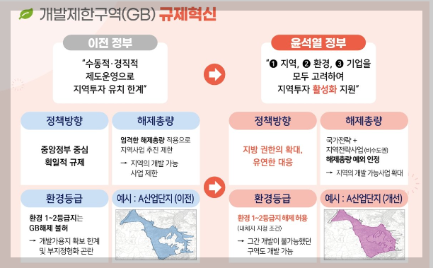 21일 정부는 민생토론회의에서 비수도권 중심으로 개발제한구역 즉 그린벨트를 해제하는 방안을 발표하였습니다 이로써 국가 경제와 산업에 어떤 영향을 미칠지 초미의 관심사가 되고 있습니다. 15년 5월 이후 8년 6개월 만에 규제를 푸는 것이라 전문가들은 지방 경제의 큰 활성화를 불러일으킬 것이라는 긍정적인 자세를 취했습니다. 그린벨트 규제가 완화된다면 지역 현안 사업을 추진하는 데 있어서 큰 탄력이 될 것을 전망했습니다. 그린벨트는 도심과 가까워 입지가 좋은 반면에 땅값은 저렴하여 각종 개발사업을 추진함으로 유용하게 활용할 수 있다는 장점을 내다보았습니다. 그리고 지방에서 일자리 창출이 꼭 필요함에도 그린벨트로 묶여 있어서 힘든 곳은 풀어주는 것이 맞다는 주장을 했습니다. 이를 통해 수도권 대도시 중심의 성장에서 벗어나는 등 지방 균형 발전에 큰 도움이 되고 인구 분산 효과에도 상당한 도움이 될 것이라고 내다보았습니다