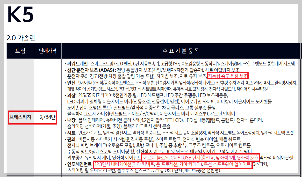 ≪ K5 제원 자세히 살펴보기 ↑ ≫