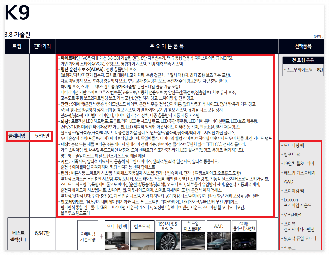 지금까지 k9의 간단한 차량 소개와 가격대 살펴보았습니다.