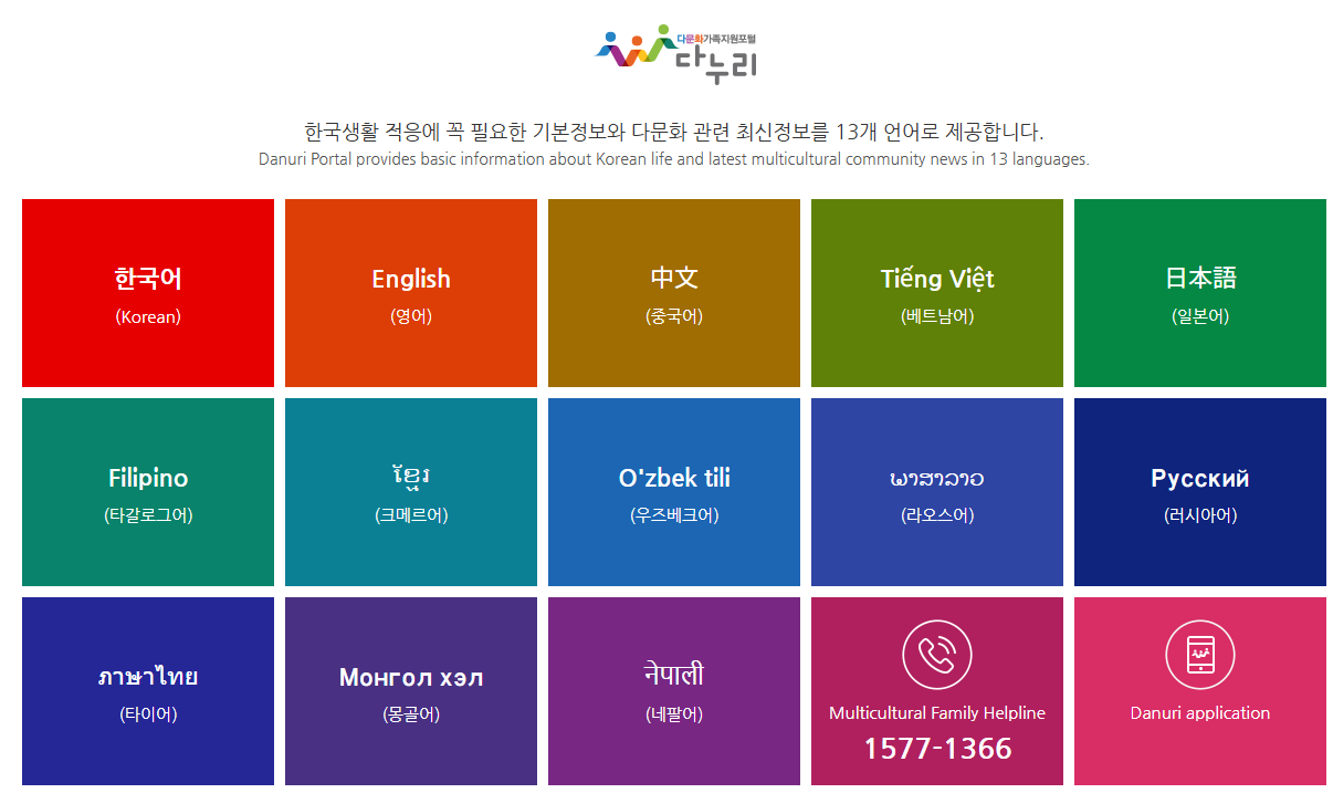 - 다문화가족지원포털 ‘다누리’(www.liveinkorea.kr)는