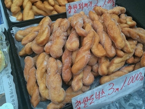 - 특징 : 겉은 바삭하고 속은 쫄깃한 찹쌀 도넛 시장 간식으로 제격.