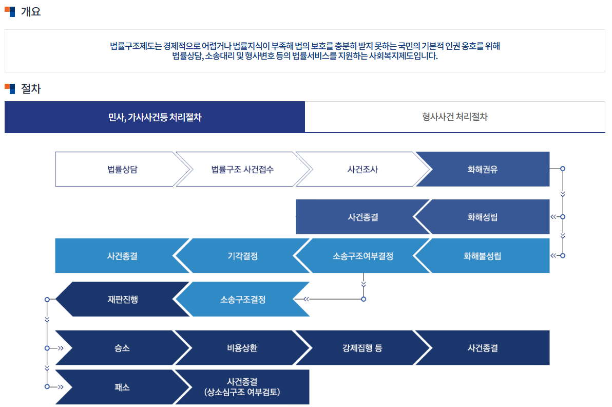 대한법률구조공단은 : 경제적 어려움 등으로 법률 서비스를 받기 어려운 국민을 위해 무료 법률 상담 및 지원을 제공하는 공공기관입니다.