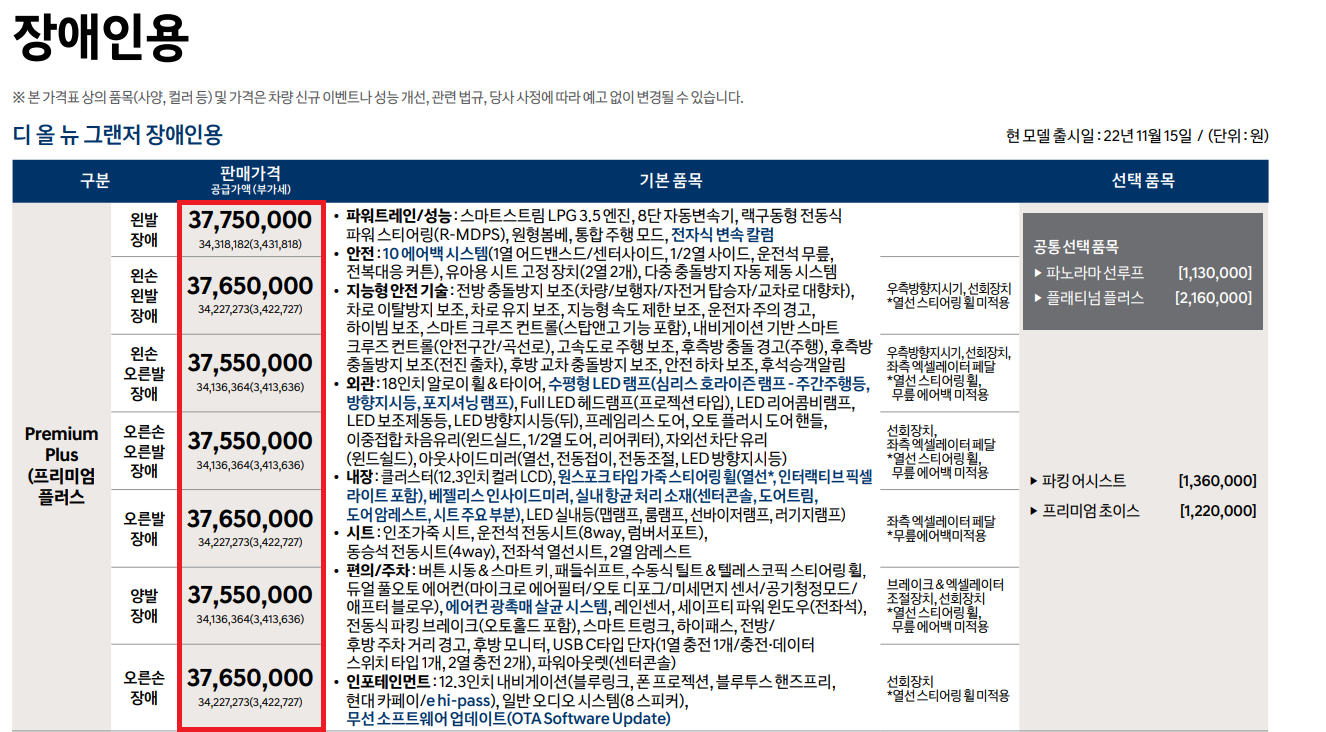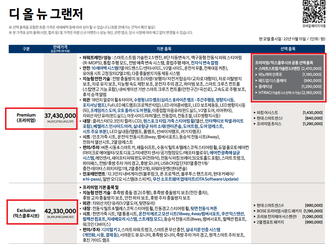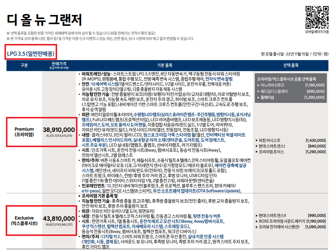 먼저 그랜저 가격부터 살펴보겠습니다.