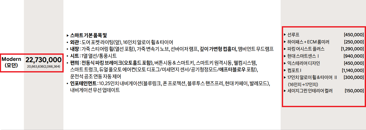 지금부터 가격과 차량 내외부 소개 들어갑니다.