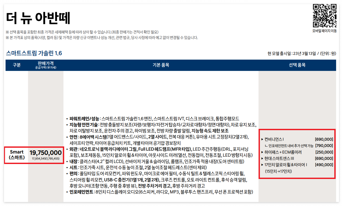 더 뉴 아반떼 가격