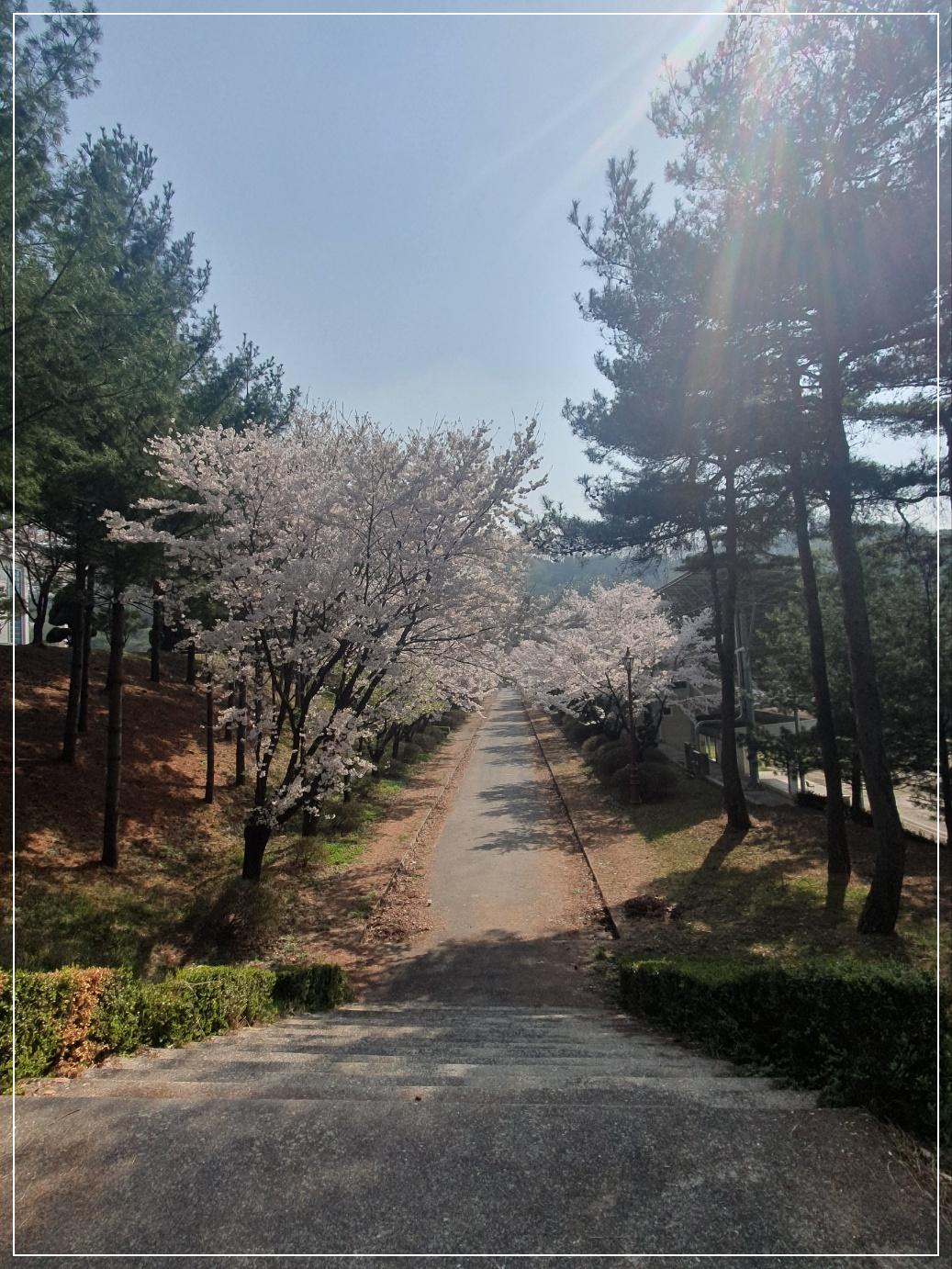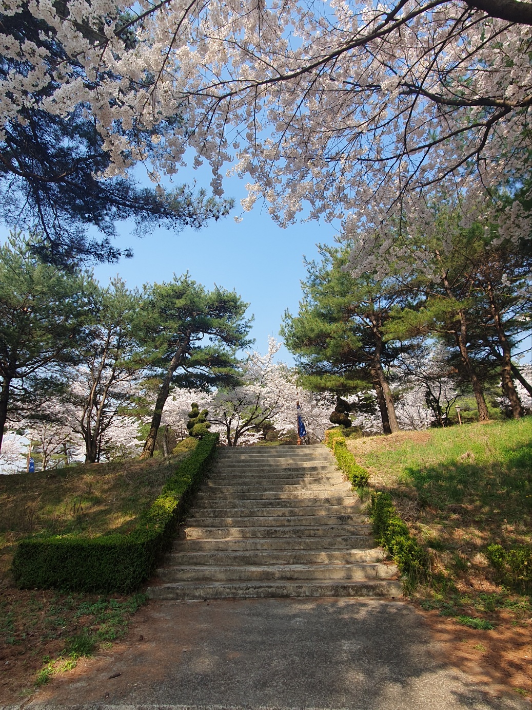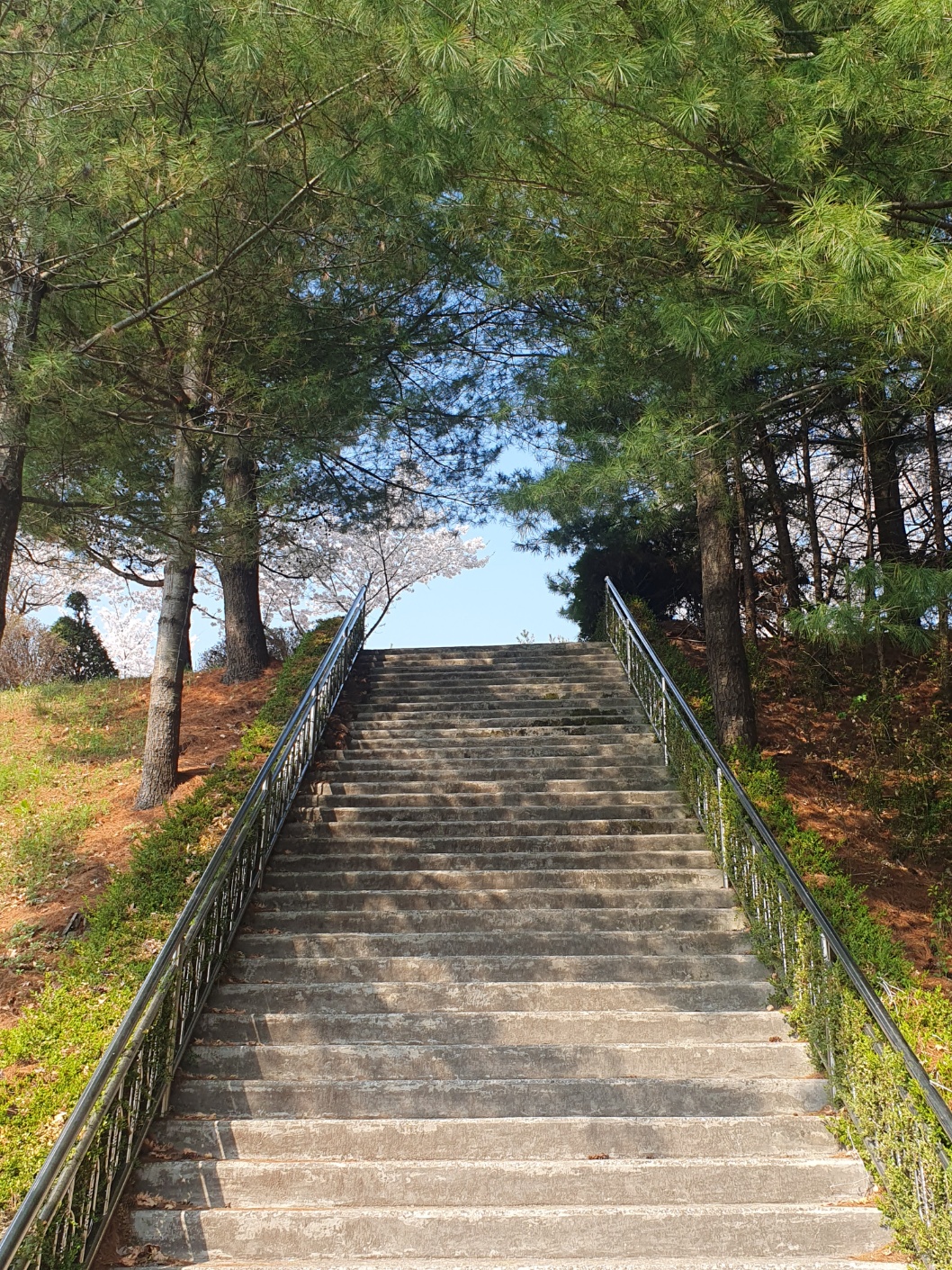 아름다운 벚꽃뿐만이 아닌 계단 사이로 우직하게 있는 소나무의 전경도 멋있었습니다.