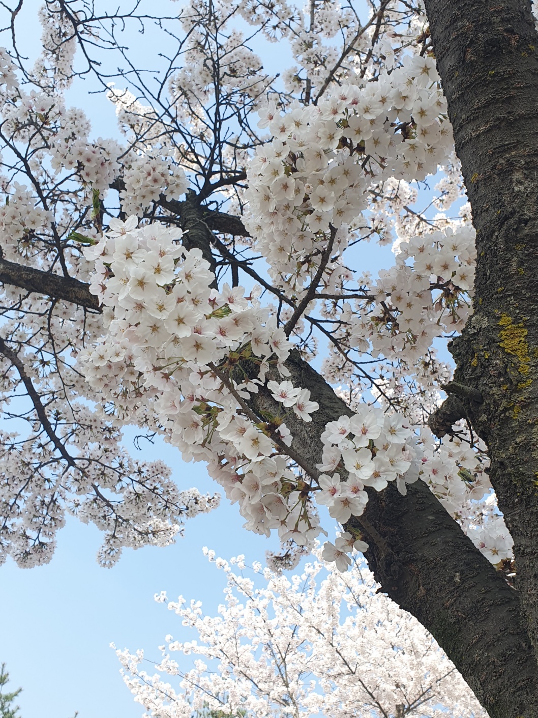 가까이에서 바라보니 더욱 아름다웠습니다. 벚꽃 향도 코를 찌르고, 바람이 살랑살랑 불어주니, 꽃잎도 약간이 흩날리고 있었습니다.