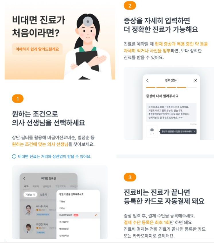 코로나 이후에 비대면 진료가 도입되었고 본격적으로 도입되기보다 어쩔 수 없는 상황과 시기에 맞는 맞춤으로 일시적인 부분이지 않을까라는 것이 있었습니다 그러나 이번에 전공의 집단행동에 비대면 진료는 2배 이상 급증한 상태입니다. 그리고 비대면 진료도입이 완전히 진행된 상태입니다. 그럼 이 시점에서 기존의 대면 진료보다 비대면 진료 장점이 무엇인지 살펴보고 그에 따른 앱 사용방법에도 한번 알아보겠습니다.