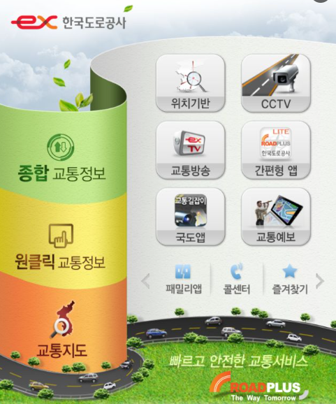 - 한국도로공사 로드플러스 : 고속도로 상황과 휴게소 정보 확인.