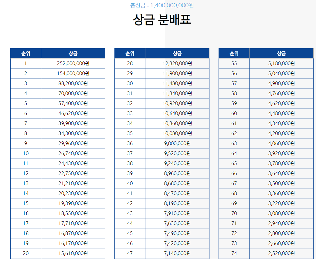 총 상금 14억 원 우승 상금이 2억 5천2백 원