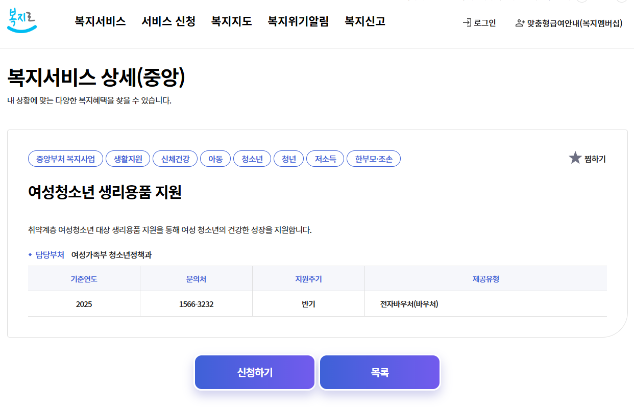 생리용품 구매에 부담을 느끼고 있다면, 지금 바로 신청해 보세요!