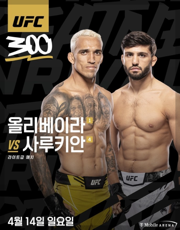 데이나 화이트 대표는 이번 300 대회에서 찰스 올리베이라 와 아르만 사루키안의 라이트급 경기를 발표했습니다.