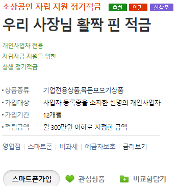 개인 사업자 전용! 자립자금! 지원을 위한 상생 정기적금을 소개합니다.