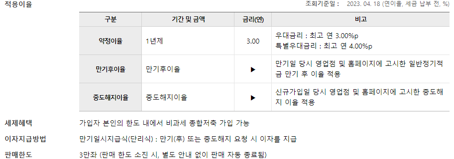 기본 금리 : (적용금리) 기본금리+우대금리+ 특별우대금리