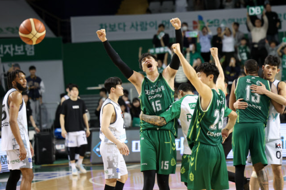 정규리그 우승팀인 원주 동부는 시즌개막 후 한 번도 1위 자리를 내주지 않는 투지와 저력을 보여준 팀입니다. 와이어 투 와이어 우승을 일궈냈습니다. 이는 KBL 통산 4번째 기록으로 되며 김주성 DB 감독은 KBL 역대 6번째로 정식 감독 데뷔 시즌에 팀을 정규리그 1위에 올리는 기록을 이뤄냈습니다. 원주종합체육관에는 3400 명 이상의 가까운 관중이 찾아주며 홈팀 DB의 우승 현장을 지켜보았습니다. 엎치락뒤치락하는 치열한 접전과 공방전이 이어지며 흥미와 재미 짜릿한 경기의 묘미까지 더해주며 경기의 열기는 뜨거웠습니다. 연장전까지 이어졌습니다. 연장전에 DB 유현준의 자유투에 힘입어 103대 101로 KT를 앞선 뒤 32초 전 로슨이 골밀 득점을 무난히 성공시켜 105대 101까지 만들었습니다. 막판 동부의 에이스 김종규의 자유투 두 개 또한 성공시키며 승리에 쐐기를 냈습니다.