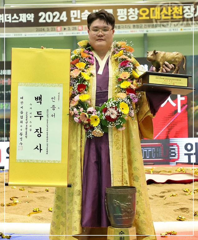 28일 강원 평창군 진부 생활 체육관에서 펼쳐진 위더스제약 2024 민속씨름 평창오대산천 장사씨름대회에서 백두장사 140 kg 결정전에서 짜릿하게 우승하며 장사트로피를 들어 올렸습니다. 영암군씨름단에서 이적하여 새로운 구단에서 적응과 동시에 우승트로피들을 들어 올리며 아직까지도 장성우의 이름을 알리고 유명세를 떨치고 있습니다. 5판 3선 승제에 결정전에서 장성우는 차승진 구미시청소속 선수를 만나 3대 1로 승리하며 작년 대회에 이어서 대회 2연패라는 달성을 하며 웃음과 함께 노력을 결과를 얻었습니다. 16강전에서는 김찬영 정읍시청소속 선수를 2대 0으로 완파하고 8강에서 우승후보 이재광(영월군청) 소속 선수를 마찬가지로 2대 0으로 완파하며 준결승에서 설날대회 백두장사 타이틀 보유하고 있는 태안군청 최성민을 2대 1로 이기고 대망의 장사 결정전 차승진에서 첫판에 잡채기를 허용 두 번째 판에선 뿌려 치기 되치기로 승부를 원점으로 그리고 기세를 몰아 장성우는 밀어 치기를 연달아 성공시키며 승부에 결정지었습니다.