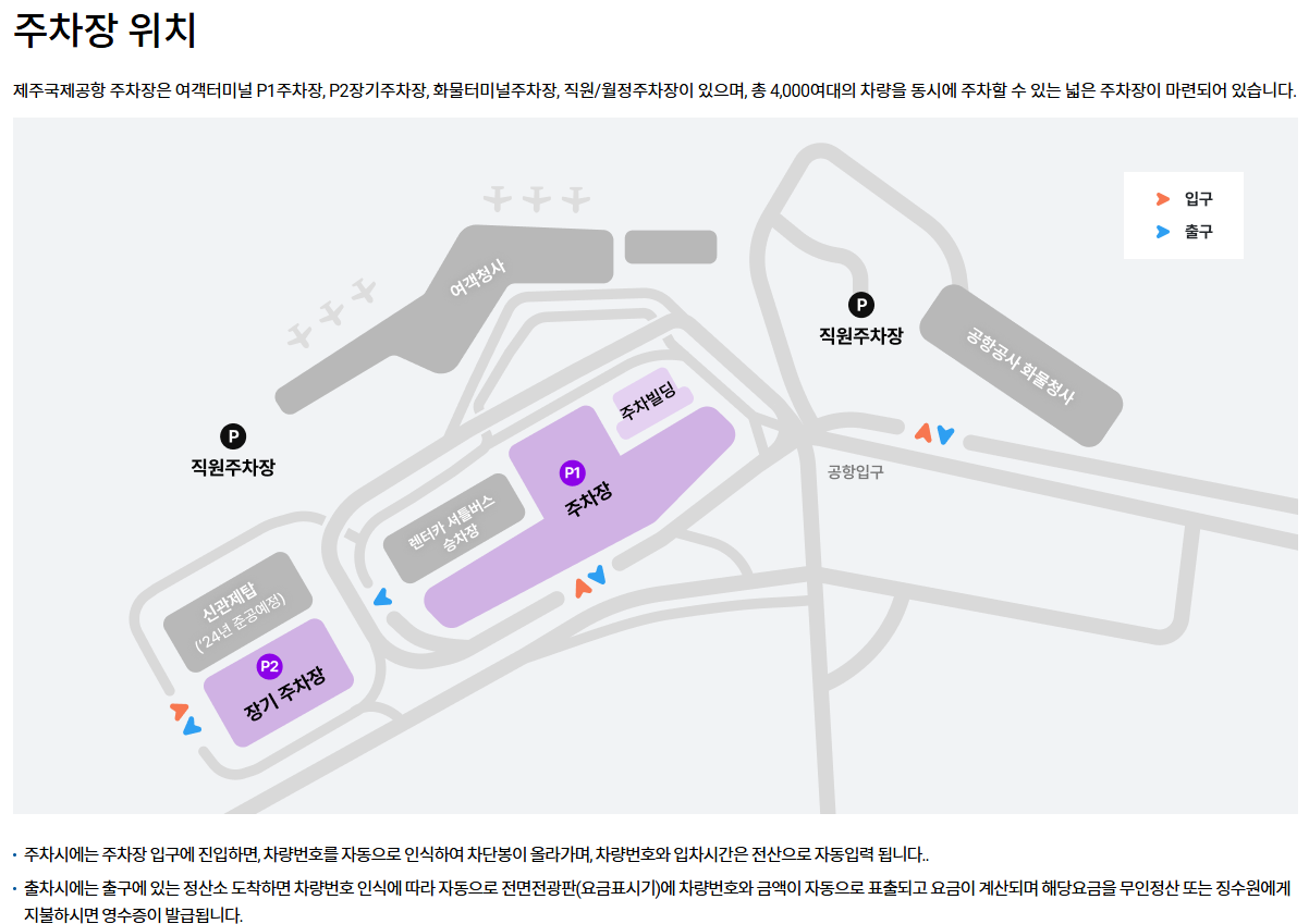 - P1 주차장: 단기 주차장, 터미널 바로 앞 위치