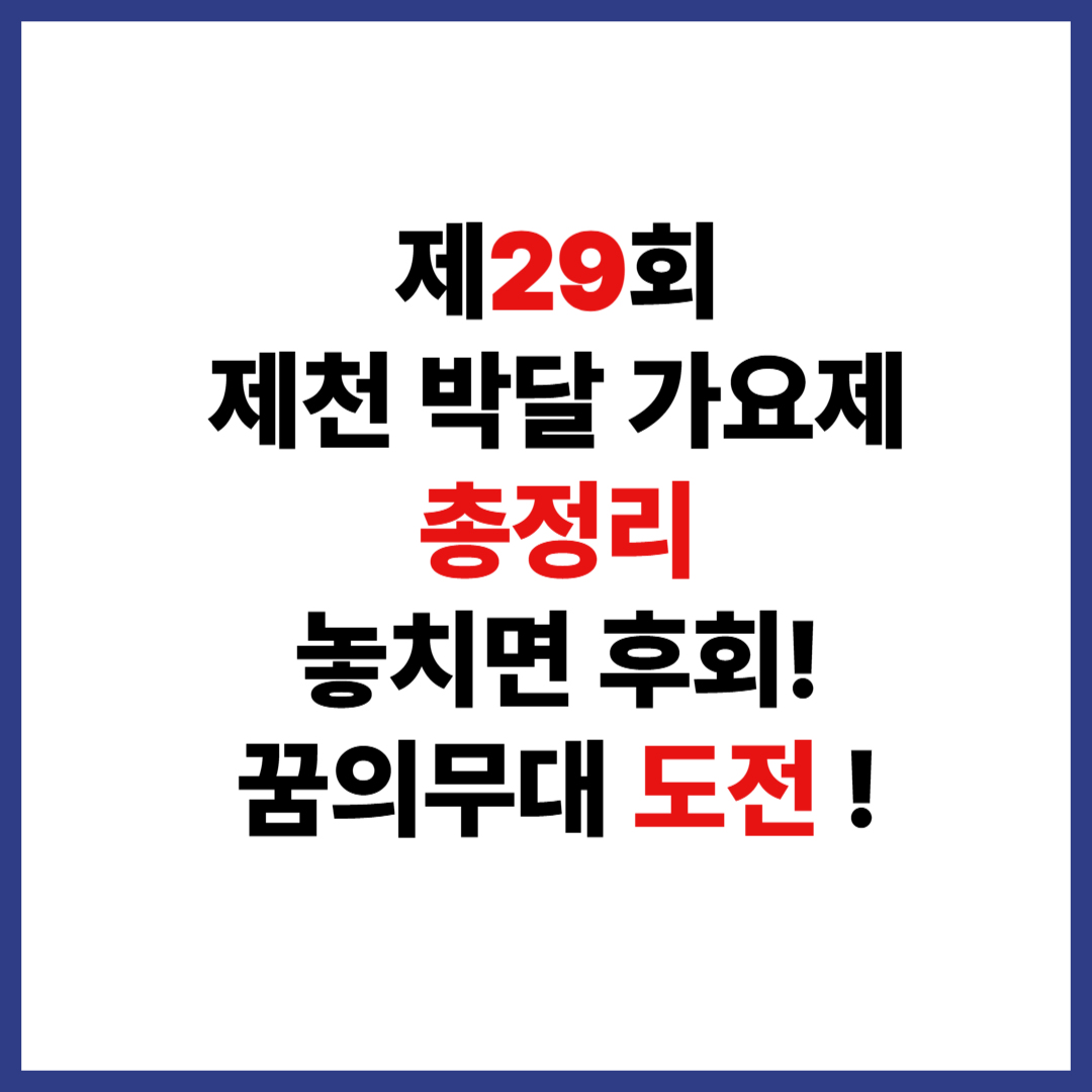 국내 트로트 신인가수들의 등용문이라 불리는 제천 박달가요제가 올해로 제29회를 맞이했습니다. 제천문화재단은 오는 2025년 9월 21일(일), 제천국제한방천연물산업엑스포 행사장 메인무대에서 본선을 개최한다고 밝혔습니다. 이번 대회는 전국적인 관심을 모으는 만큼, 참가자뿐 아니라 트로트 팬들에게도 큰 기대를 주고 있습니다. 인기 있는 가요제 이므로, 빠른 신청이 필요합니다.