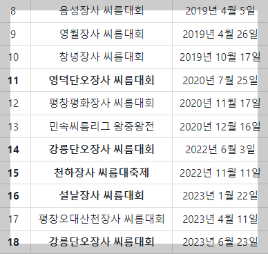 | 2018 | 보은단오장사 씨름대회 금강장사 |