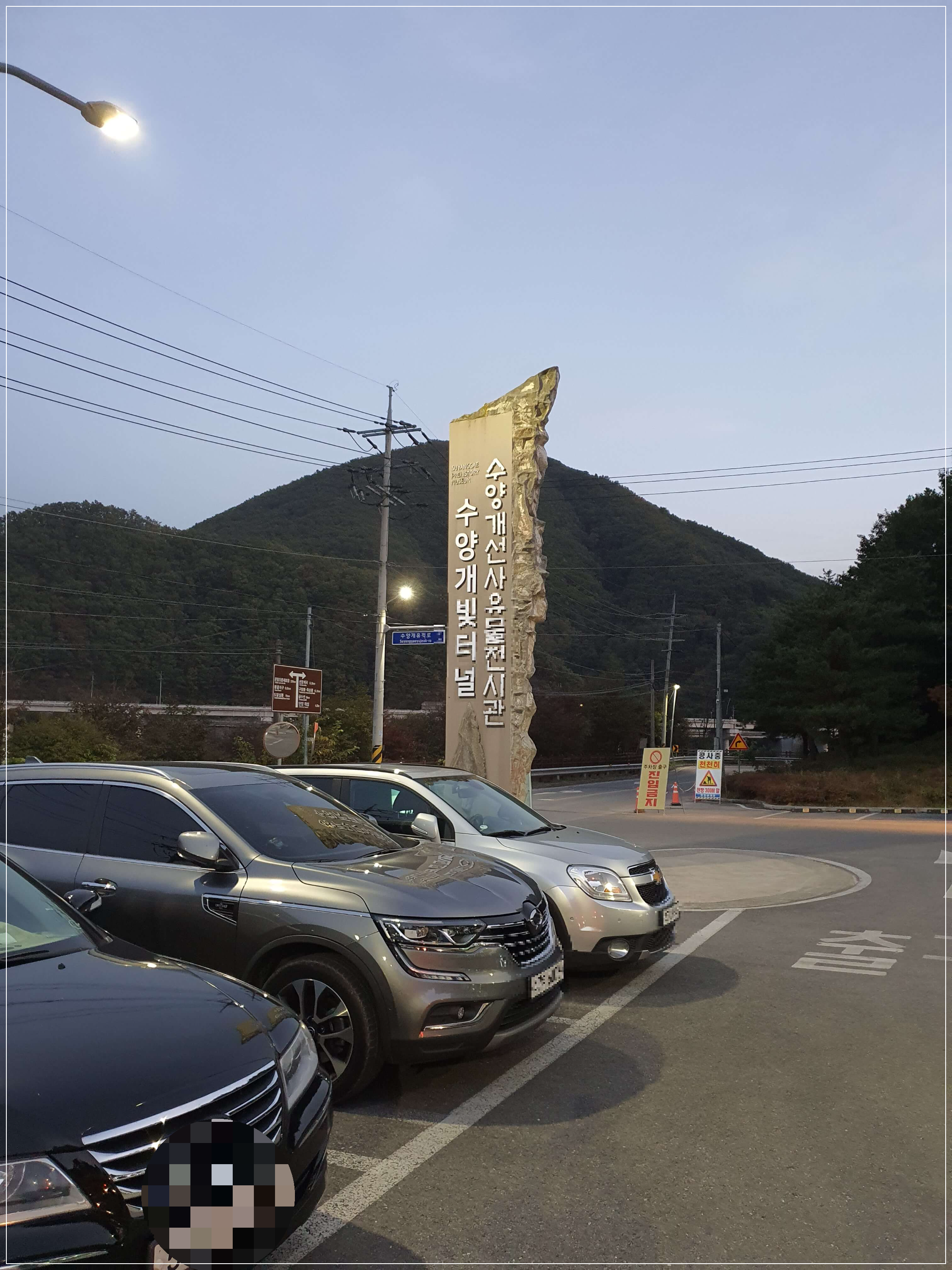 수양개빛터널 주차장에 도착하니 어둠이 깔리기 시작했습니다.
