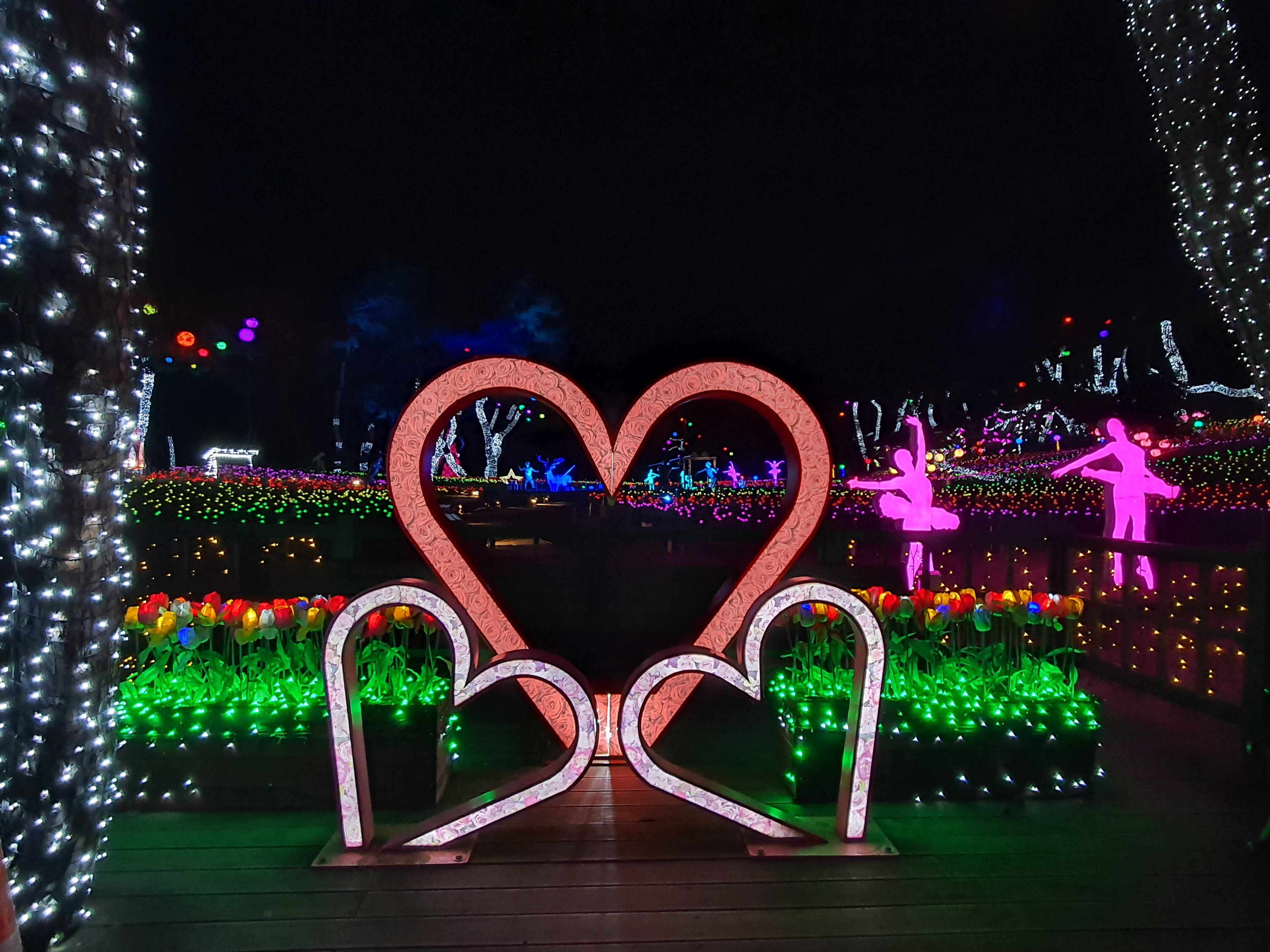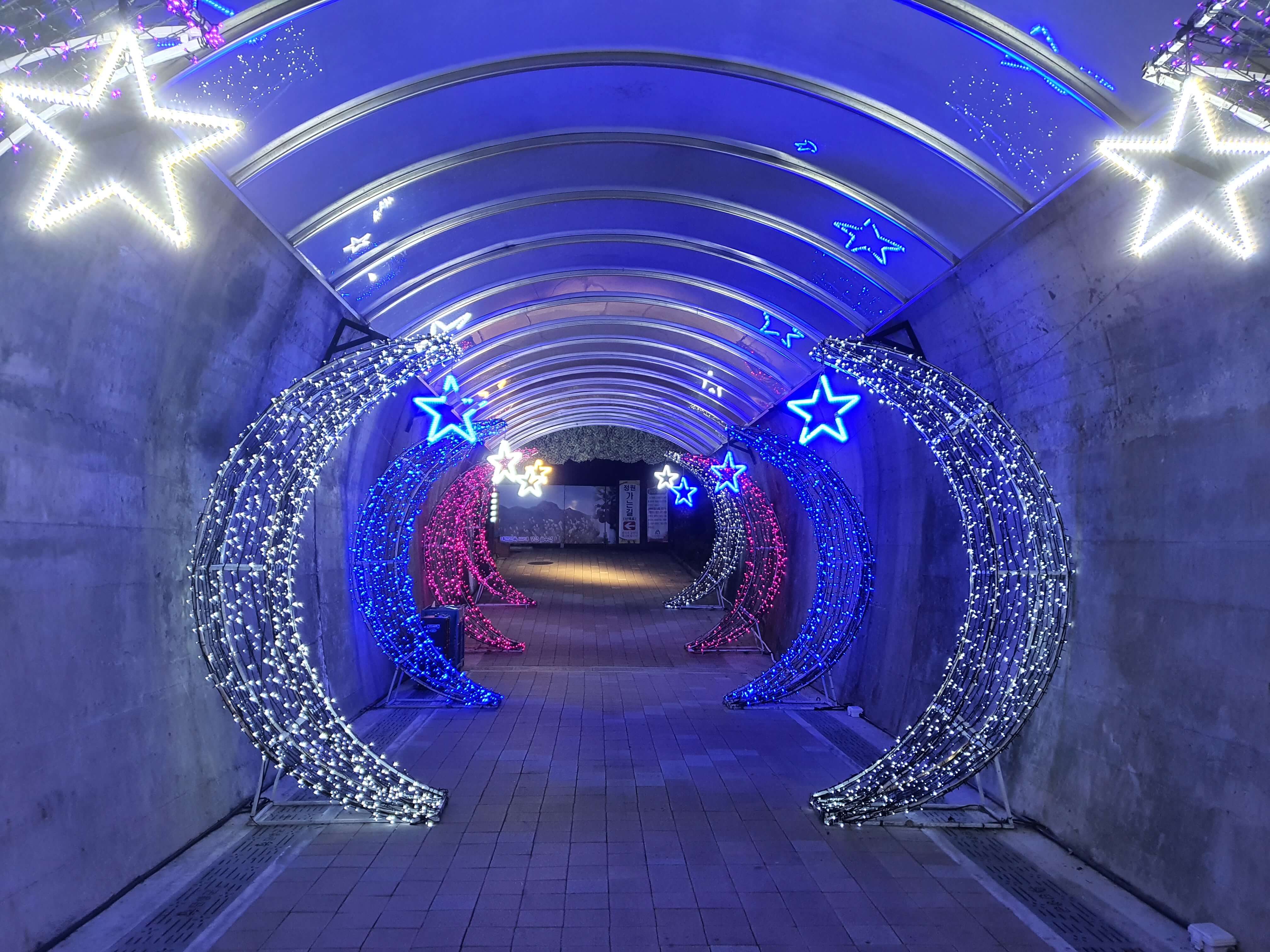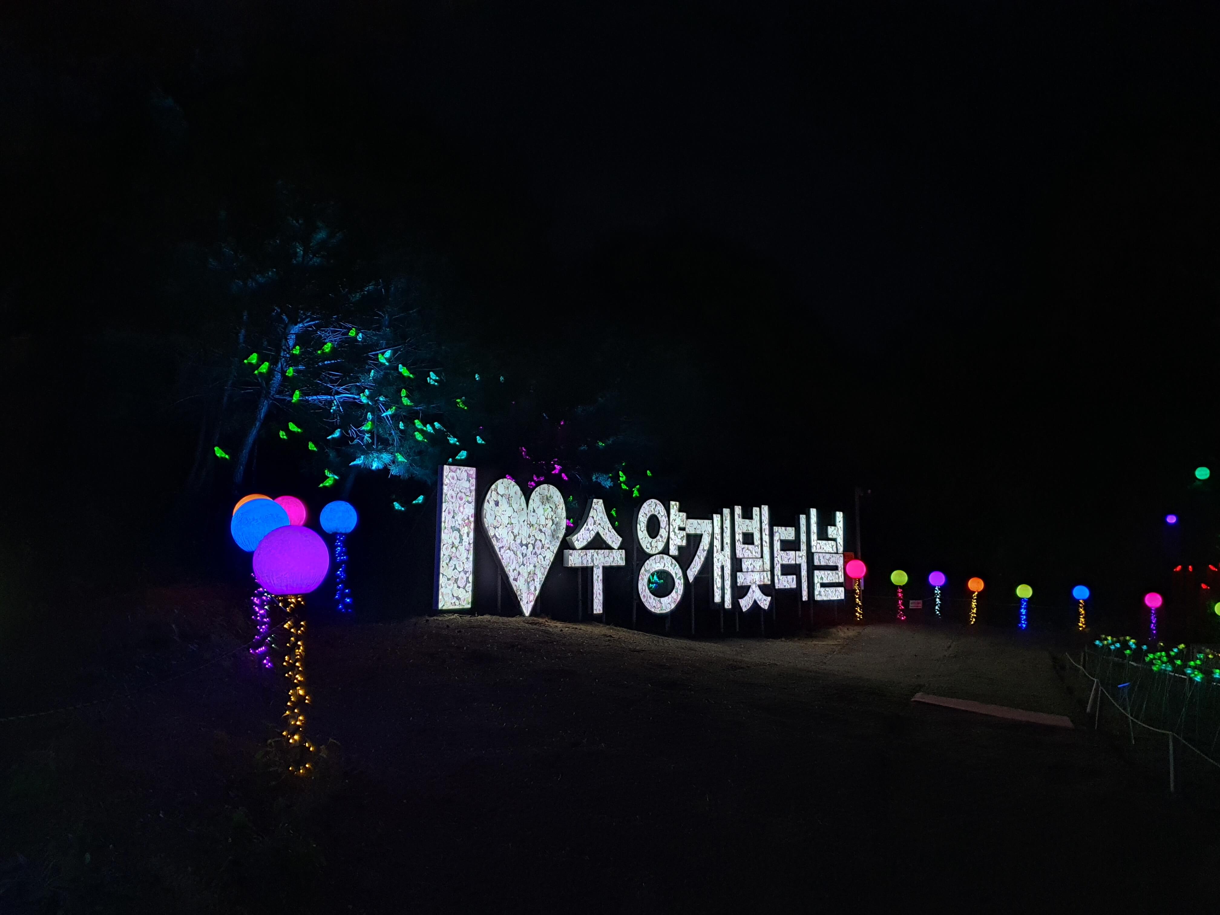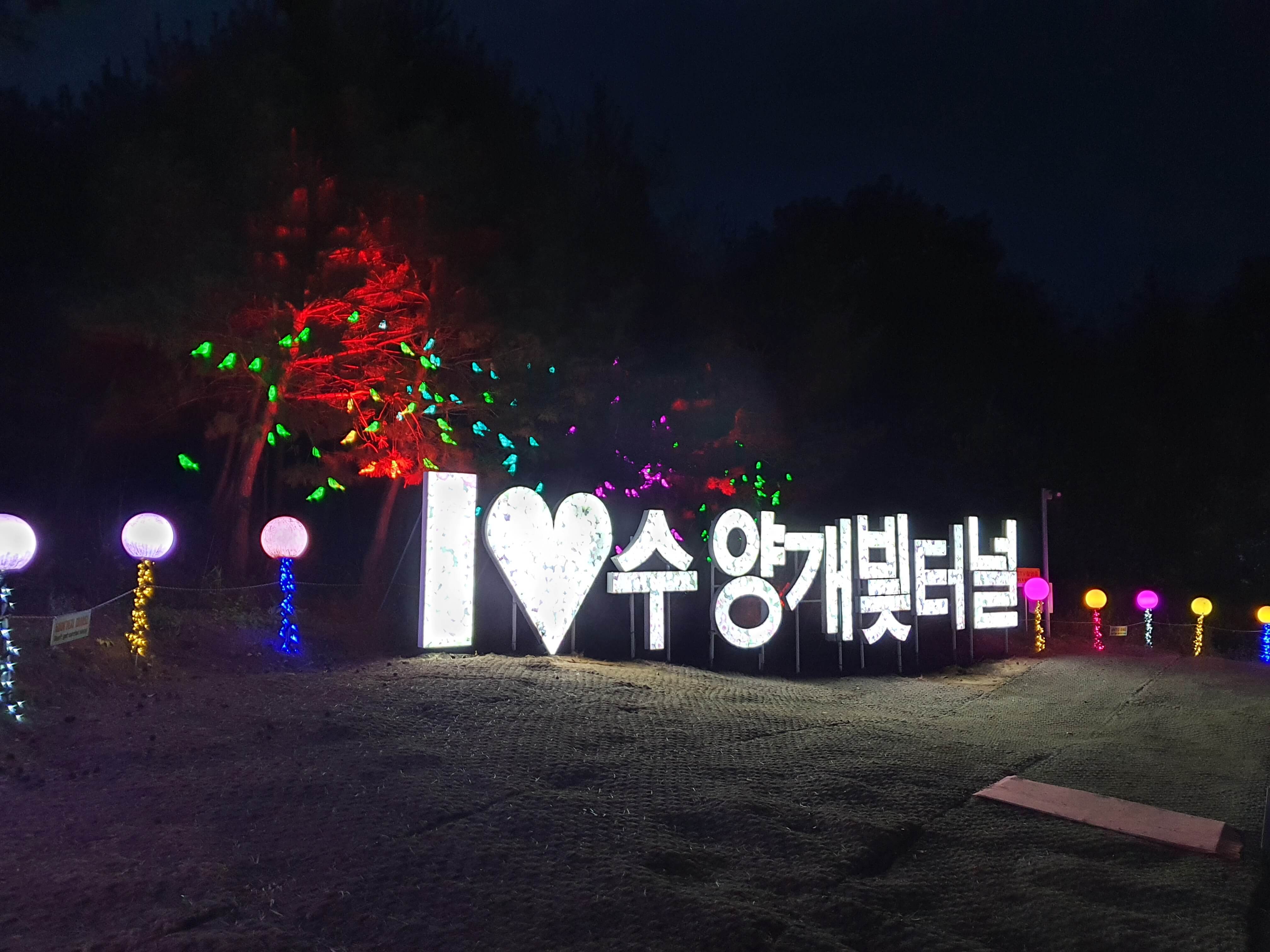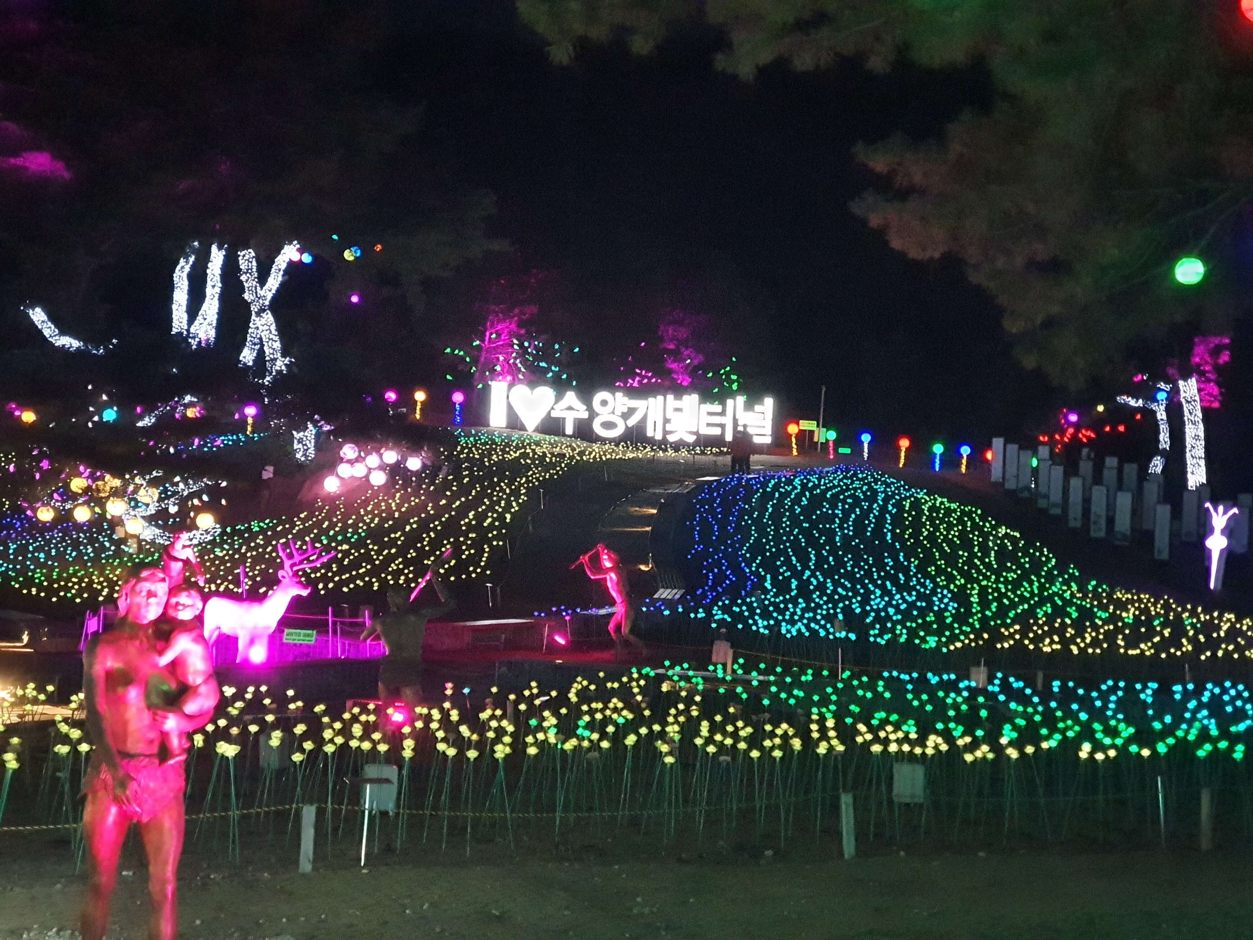 수양개 빛터널 타이틀에 , 조형물(조명등) 및 여러 조형물들의 포토존까지