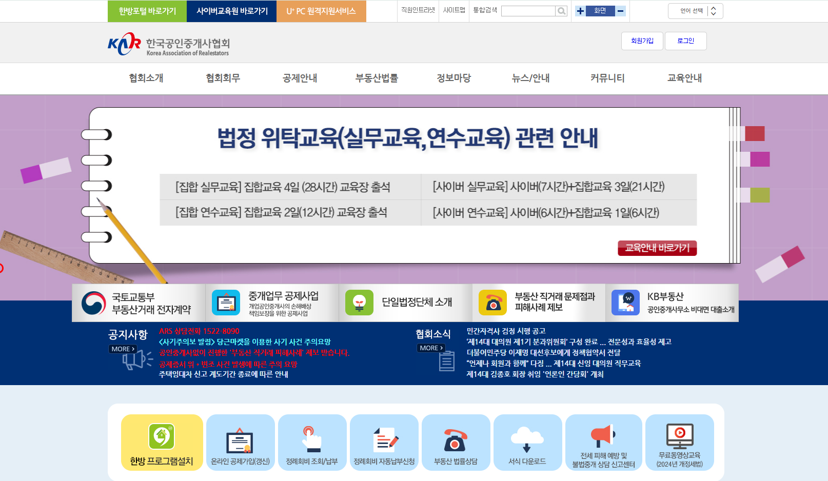 한국공인중개사협회 홈페이지(https://www.kar.or.kr)는 단순한 정보 제공 사이트를 넘어