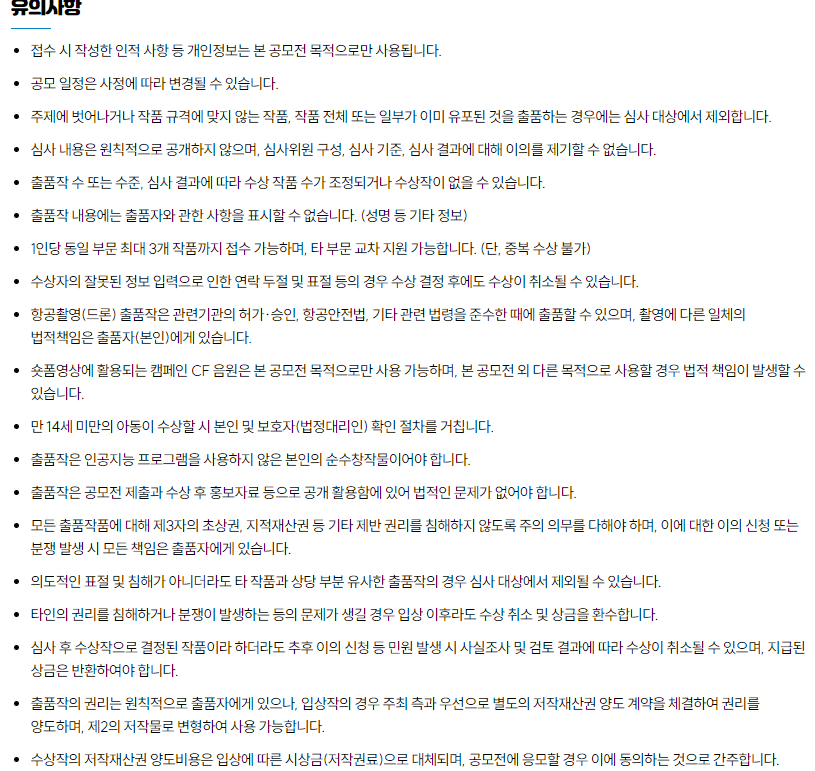 출품작수제한 동일 부문 최대 3개 작품 접수 가능