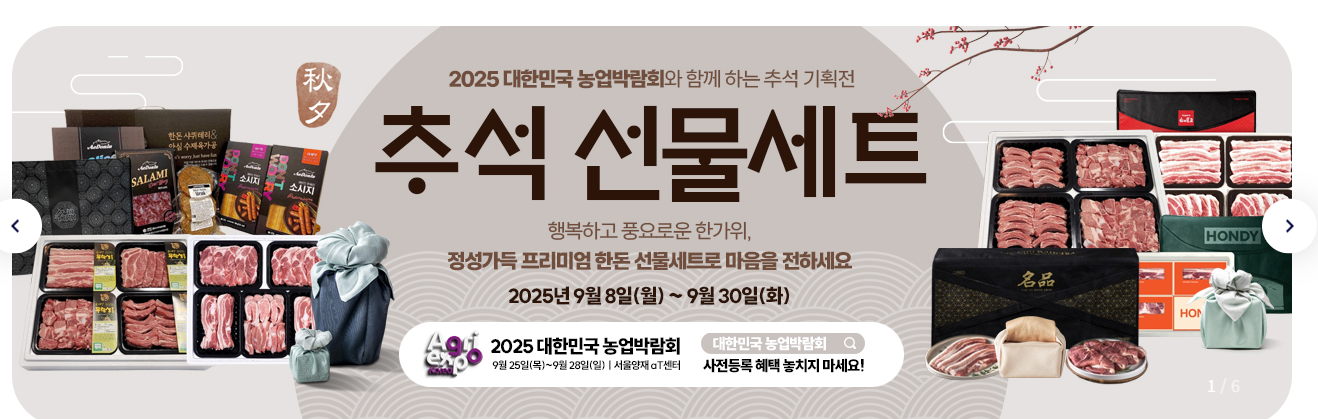 특히 추석에는 ‘한돈 선물세트 기획전’을 통해, 구이용·보쌈용·찌개용 등 다양한 구성의 세트를 특별가로 만나볼 수 있습니다.