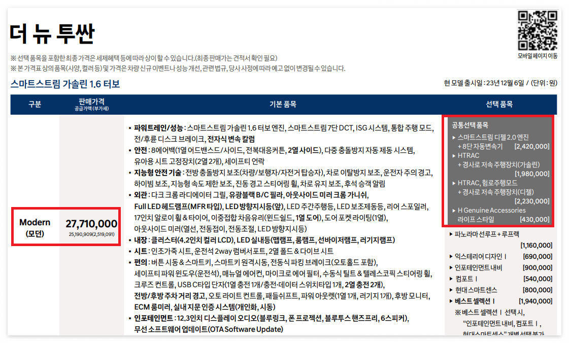 지금까지 2024 더뉴 투싼 차량의 간단히 살펴보았습니다.