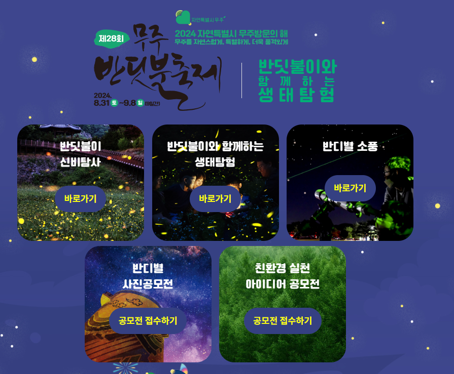 | 접수 방법 | 반딧불축제 홈페이지 인터넷 선착순 접수 |