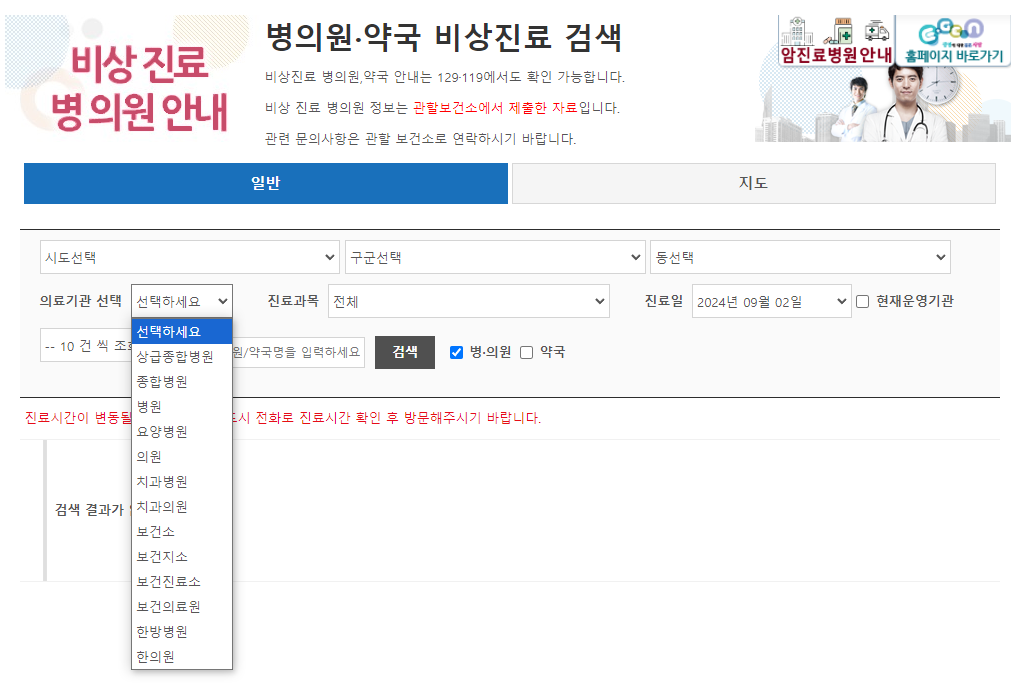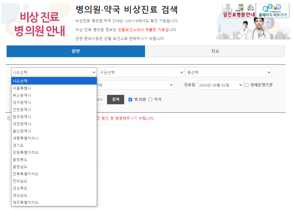 추석 명절 응급실 조회하기