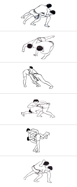 | 잡채기 | 공격자가 들기 위해 당기는 순간 상대가 들리지 않기위해 중심을 낮출떄 다리샅바는 밑으로 당기고 허리샅바는 젖히면서 상체는 좌측으로 낮추면서 넘기는 기술 |
