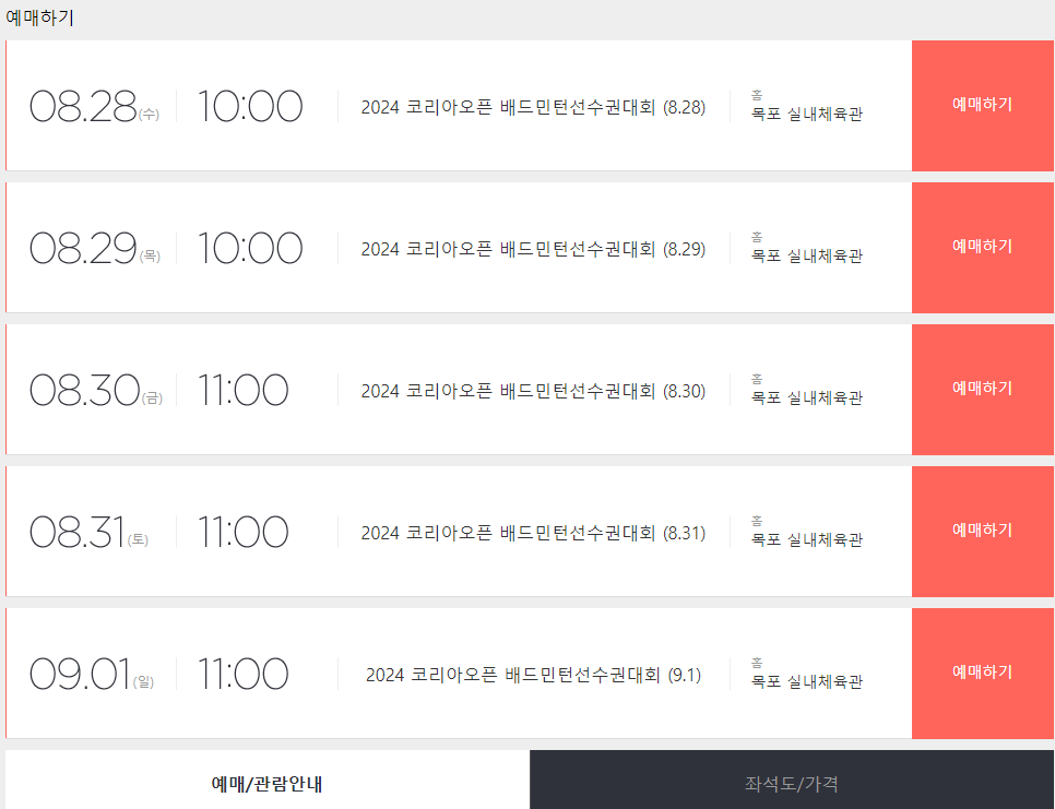 2024 코리아 오픈 배드민턴 선수권 대회 경기 일정