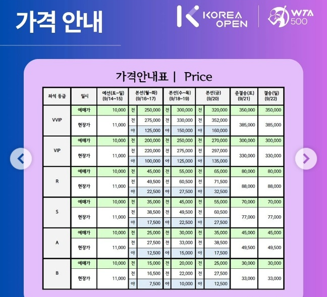 2024 코리아 오픈 테니스 대회 현장(직관) 티켓 관련 내용 확인하기(예매)