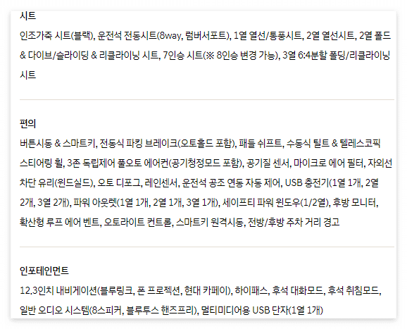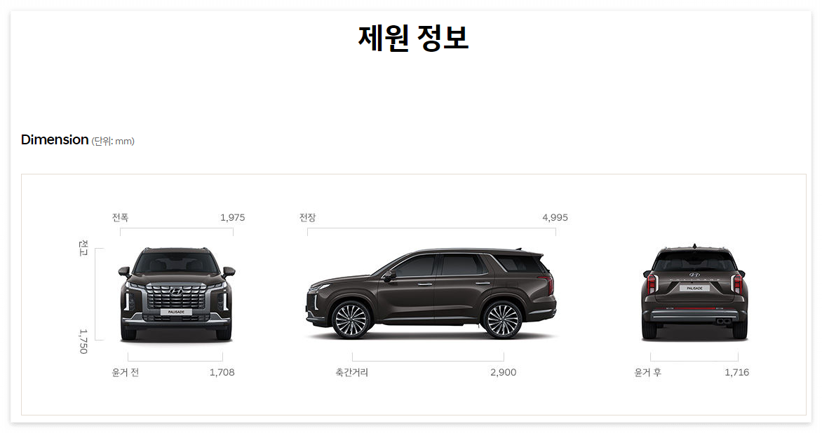 2024 팰리 세이드 제원 및 가격