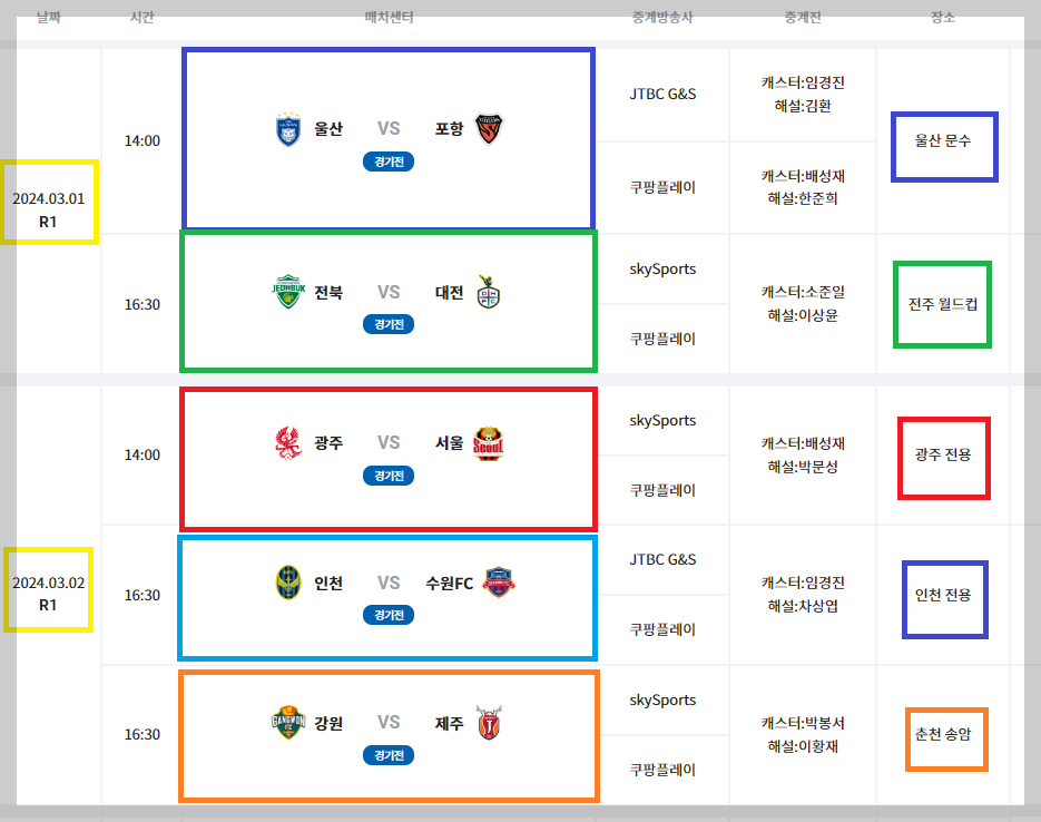 가면 갈수록 열기를 더해가는 2024 K 1 리그 개막 일정을 살펴보겠습니다.