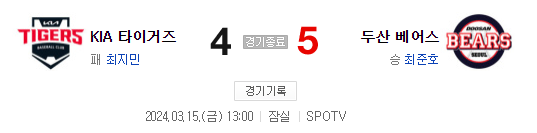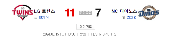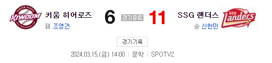 2024년 3월 15일 금요일 시범경기 구단별 내용 및 결과