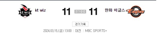 야구장을 찾아주시는 팬분들이 가장 원하는 경기가 바로 많은 안타 많은 홈런보다 많은 선수들의 흥미의 경기력은 바라시고 경기를 관람하시는 것 같습니다. 15일 열린 경기가 바로 그 현장의 모습이었습니다. 11대 11에 대 스코어가 나온 경기 바로 한화와 KT인데요. 한화는 올해 기세와 흐름이 굉장히 구단 중 한 팀입니다. 바로 닉네임 괴물투수 류현진 선수가 고향 한화로 다시 돌아왔기 때문입니다. 시범경기에 그 기세와 열정이 대단한데요. 더욱 기대가 됩니다. KT 도 이번 시즌 준비한 만큼의 기량 속에 좋은 결과가 있기를 기대해 봅니다.