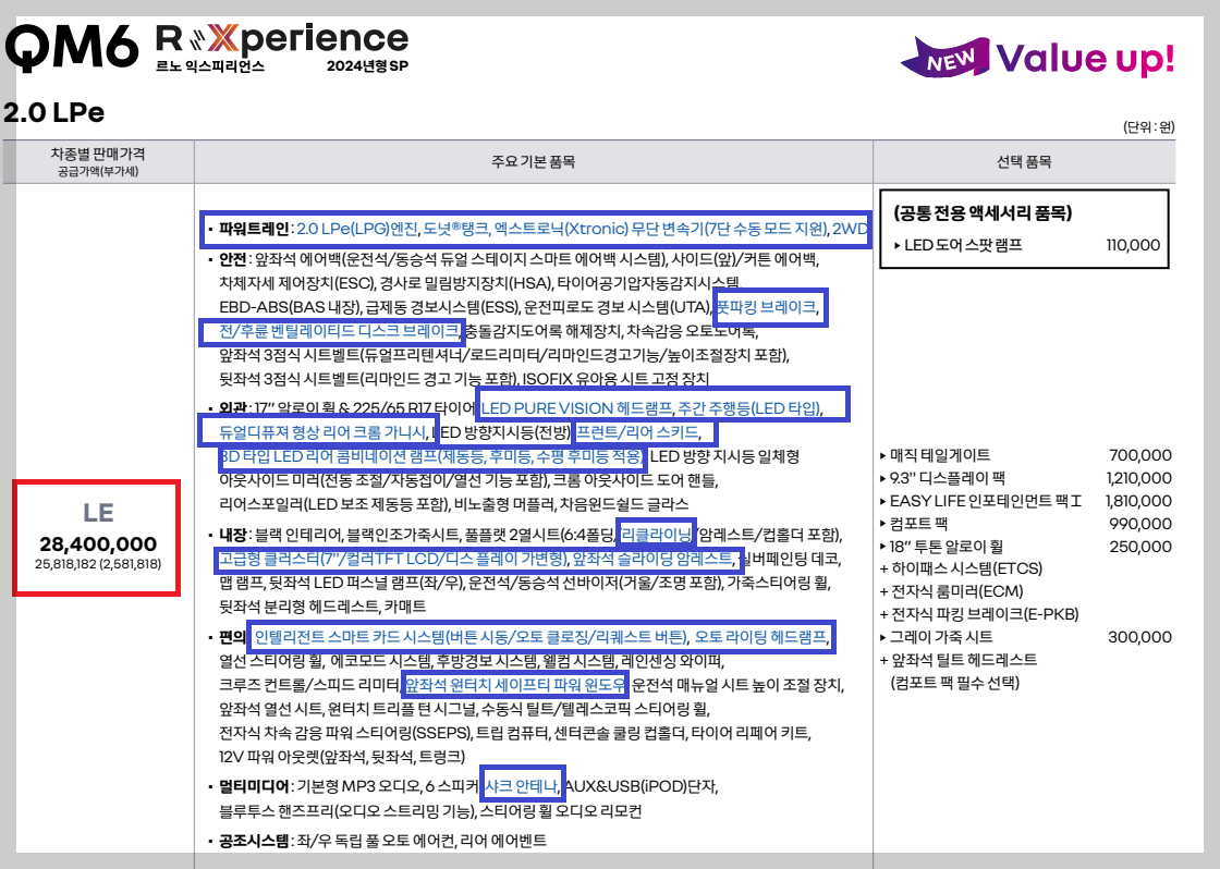 ※ 현재 사양과 제원은 기본 LE에 대한 내용입니다.