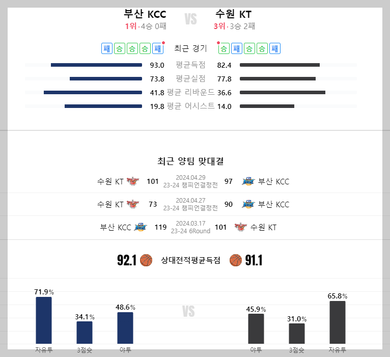 부산 KCC 이지스와 수원 KT 소닉붐 3차전!!!!